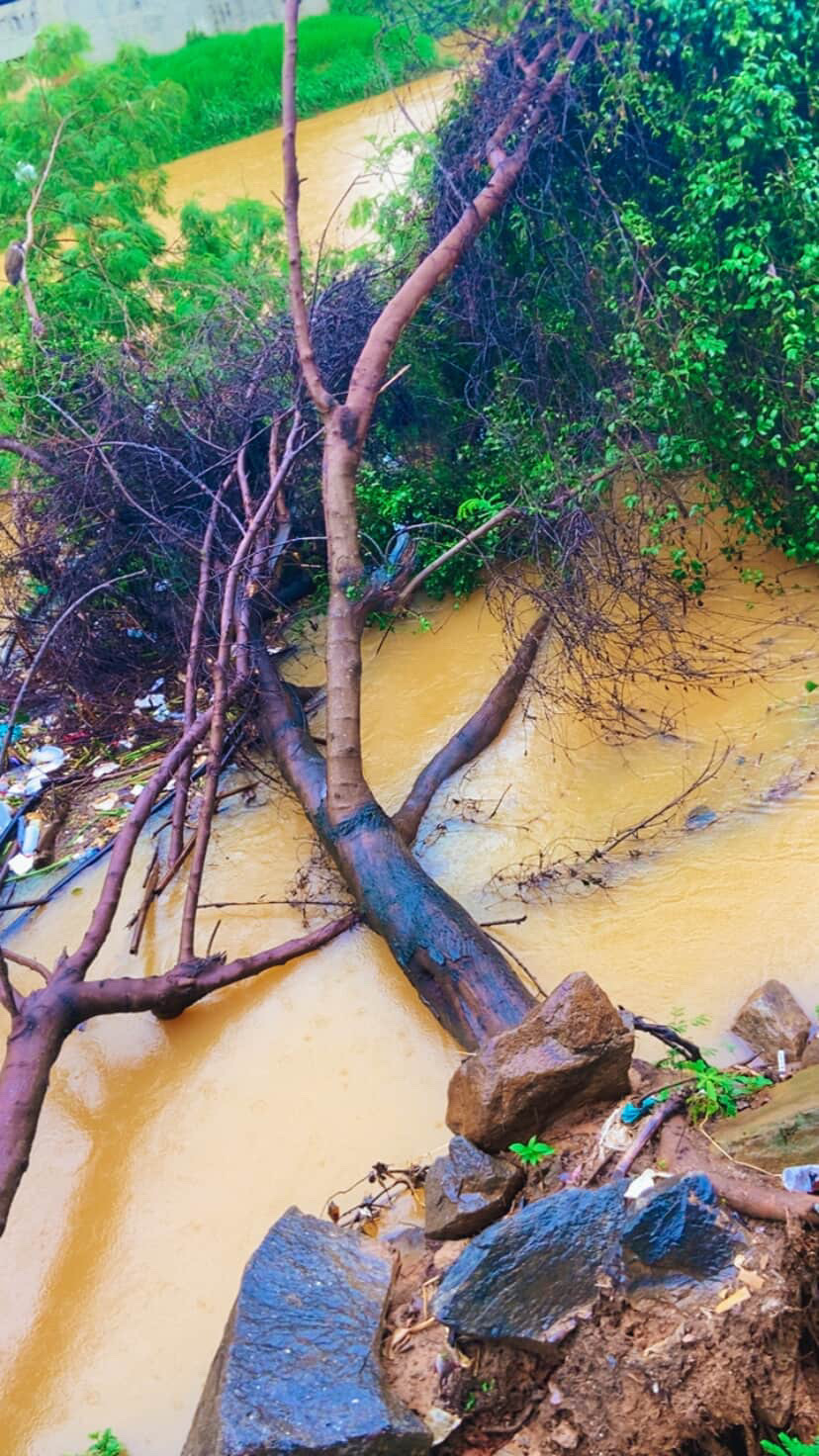 Uma árvore de grande porte caiu no Rio Muriaé, na manhã desta sexta-feira, nas proximidades da ponte da rodoviária. Com o rio em cheia devido às chuvas constantes que atingem a cidade, o local passou a concentrar grande quantidade de lixo e resíduos arrastados pela correnteza.