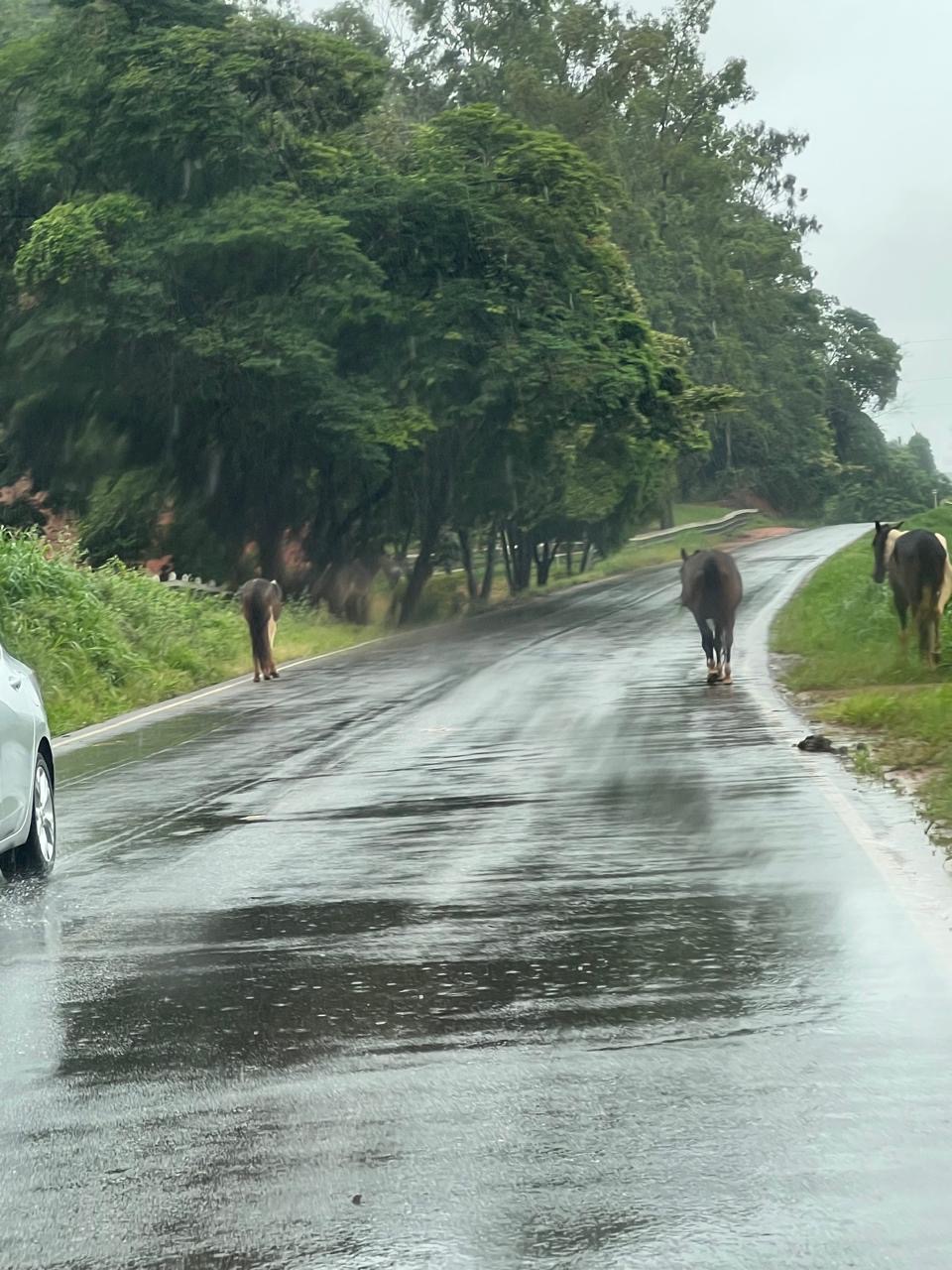 Cavalos soltos na rodovia que liga Muriaé a Miraí, na manhã desta sexta-feira, geraram grande preocupação e risco iminente de acidentes para motoristas que trafegavam pelo trecho. A presença dos animais na pista exigiu atenção redobrada dos condutores, especialmente devido à possibilidade de colisões, que podem resultar em ferimentos graves e danos materiais.