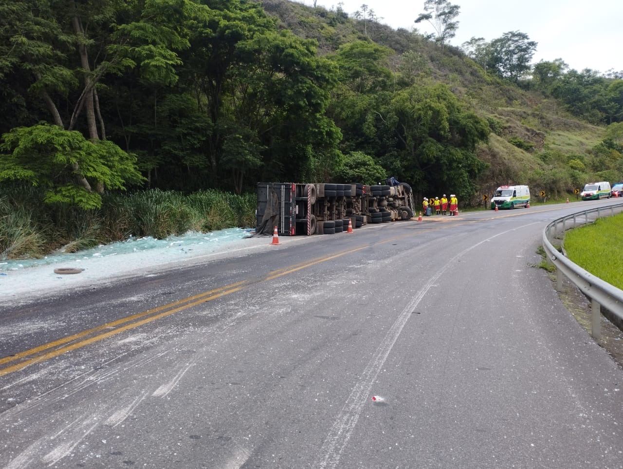 No km 780 da BR 116, as 6h45, no município de Leopoldina-MG, ocorreu um acidente do tipo tombamento, sem pessoas lesionadas.