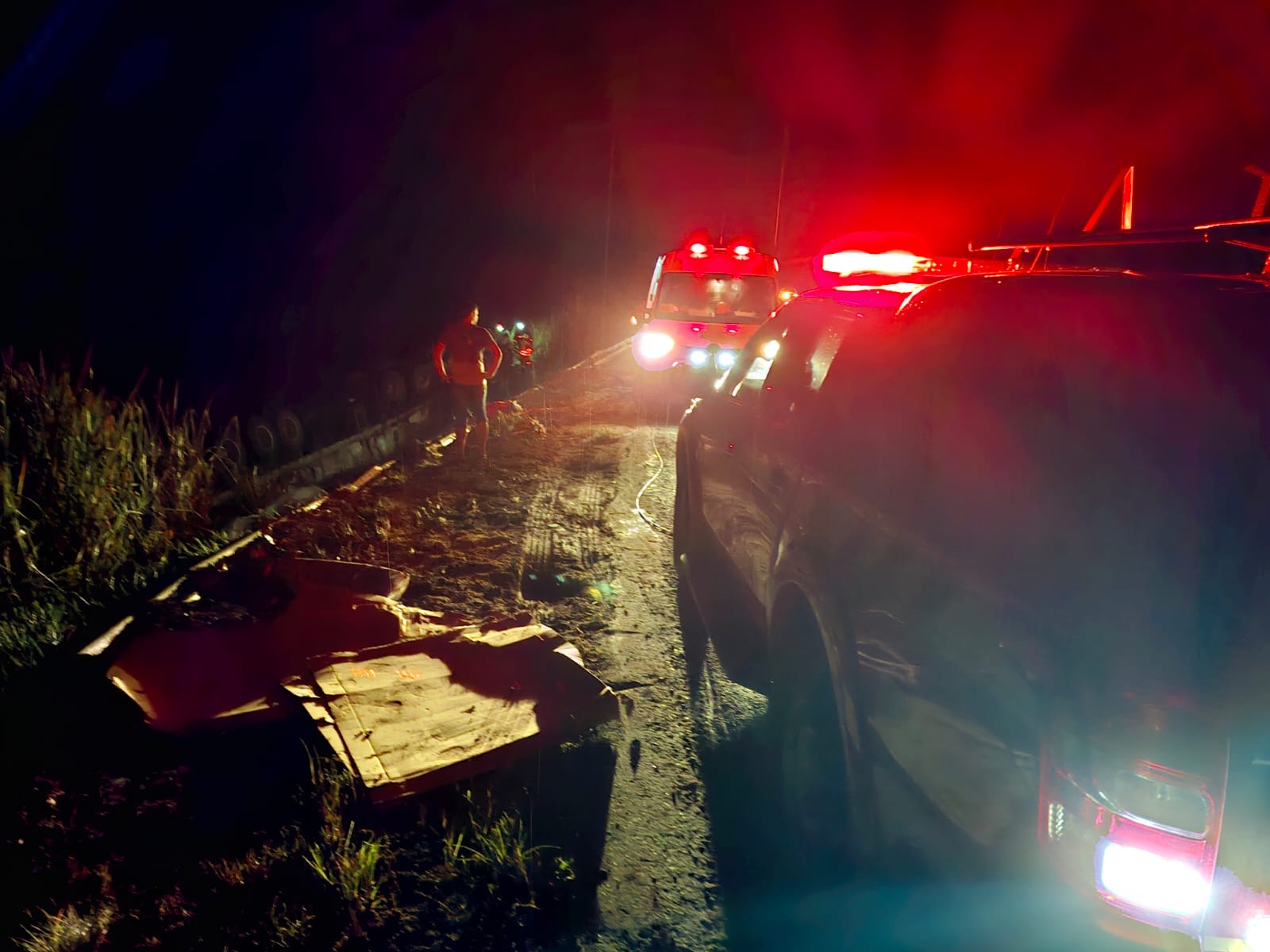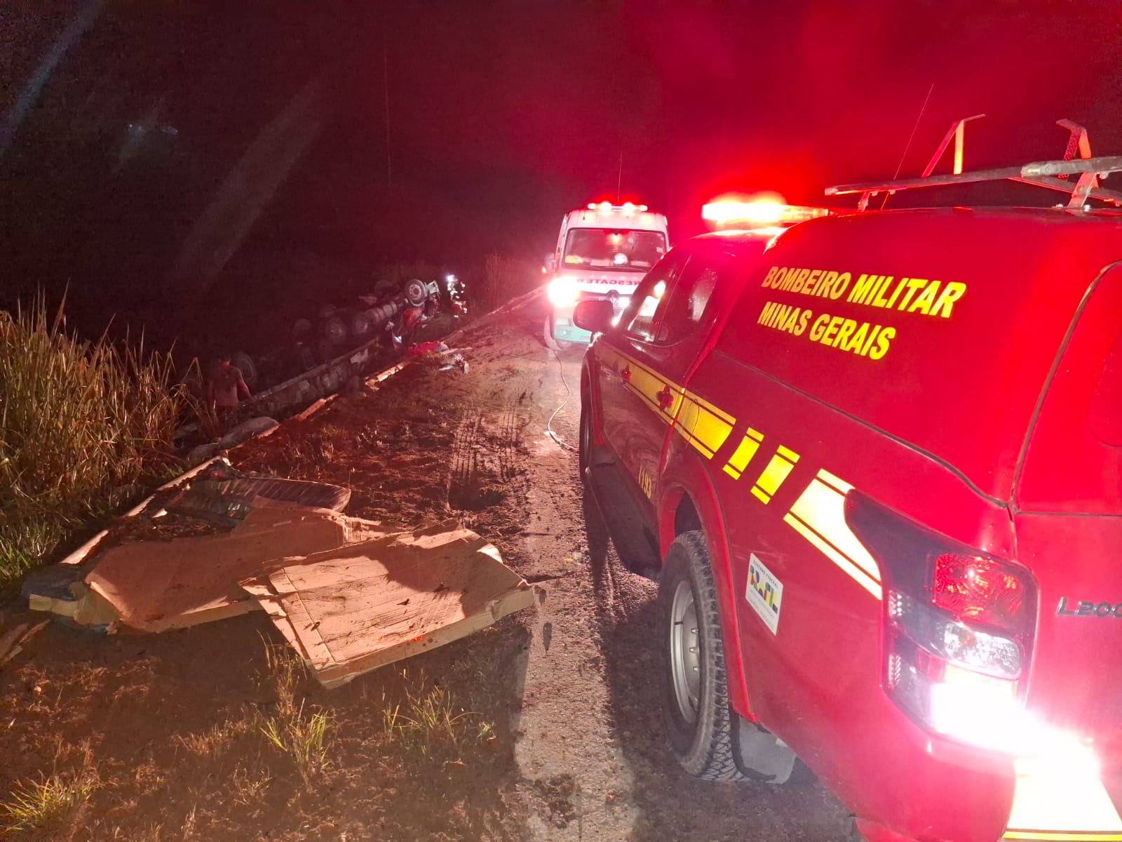 Um acidente de grandes proporções foi registrado na noite deste domingo (01) na BR-116, em Leopoldina, e mobilizou equipes do Corpo de Bombeiros e da Polícia Rodoviária Federal. A ocorrência aconteceu por volta das 20h, no km 744 da rodovia, próximo ao trevo que dá acesso ao município de Recreio.