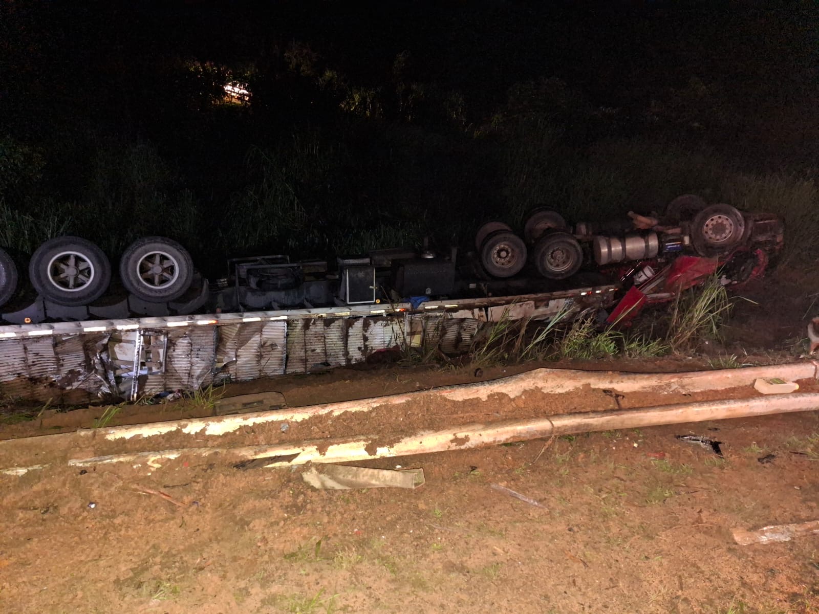 Um motorista capotou o veículo na noite desta quinta-feira, por volta das 23h15, após bater na lateral de um caminhão na estrada que liga Muriaé a Eugenópolis, próximo à região do Batatal.